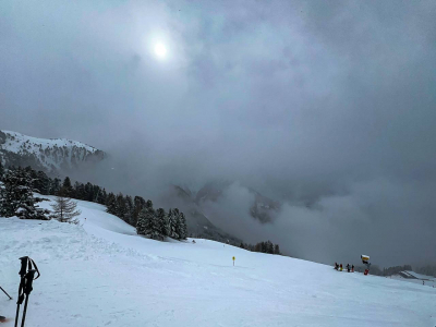 Nach dem Umziehen fahren wir direkt los, der erste Skitag beginnt. Das Skigebiet Jerzens Hochzeiger im Pitztal erreichen wir nach kurzer Anfahrt. Leider ist das Wetter heute eher in der Kategorie „stark ausbaufähig“ einzuordnen. Grau in Grau mit gelegentlichem Nebel und seltenen lichten Momenten. Auch die Schnee Qualität ist bescheiden, aber egal. Das Skigebiet ist eher kleiner, 9 Lifte und 54 Pistenkilometer. Es gefällt mir aber gut, sofern ich bei der bescheidenen Sicht mal was sehe. Ich fahre wieder bei Anja in der Gruppe. Ihr Tempo und ihre Art die Skitruppe zu leiten sagt mir sehr zu. Trotz der bescheidenen Bedingungen fahren wir den ganzen Tag und als wir gegen 15:30 Uhr am Bus sind, sind alle ziemlich erschöpft. Dort erwartet uns ein reichhaltiges Welcome-Sektbüffet und gut gelaunt geht es zurück ins Hotel. Dort angekommen beziehen wir unsere Zimmer und nachdem ich kurz noch in der Sauna war geht es zum Abendessen. Das Essen ist, wie immer im Mozart, ein 3-Gänge Menü und sehr gut. Der Abend fällt danach sehr kurz aus, die meisten sind nach der nächtlichen Busfahrt und dem anstrengenden Skitag doch reichlich müde!