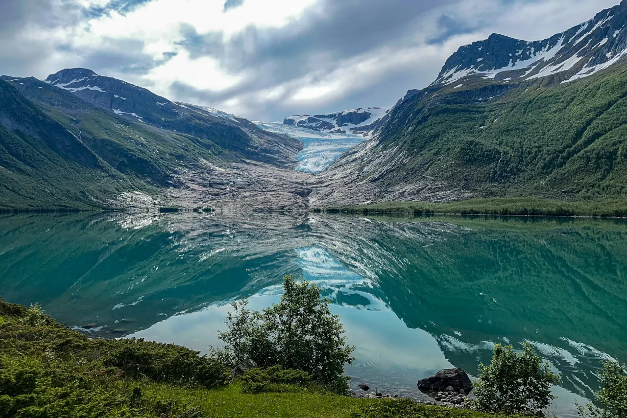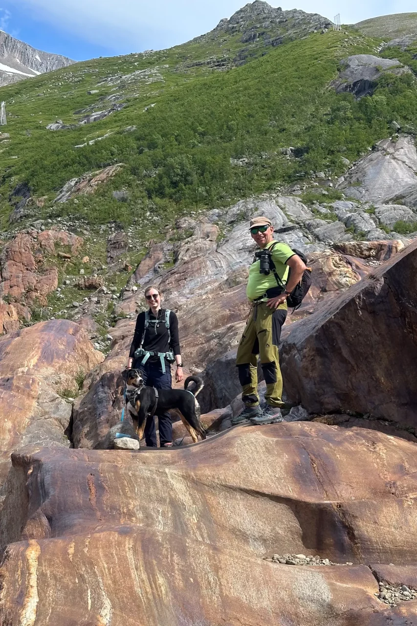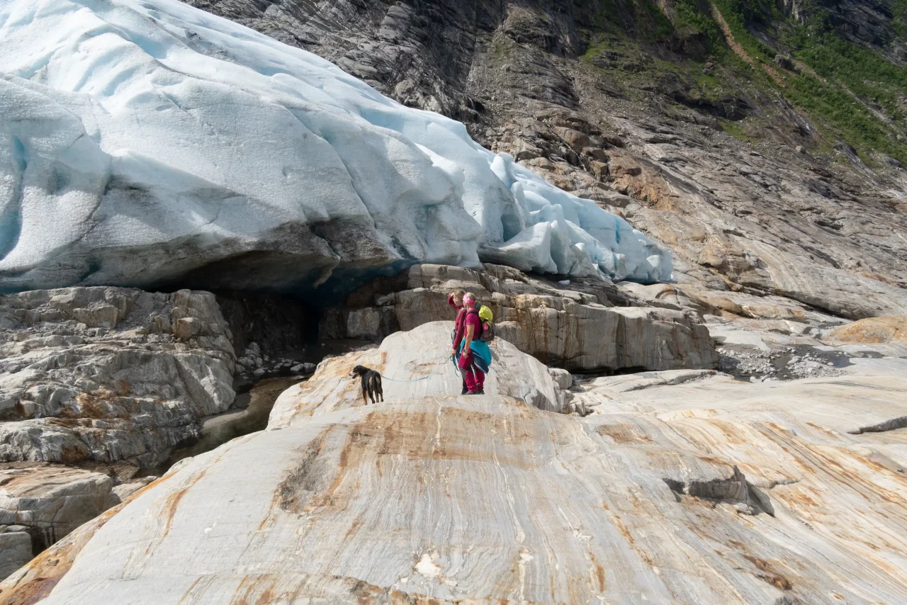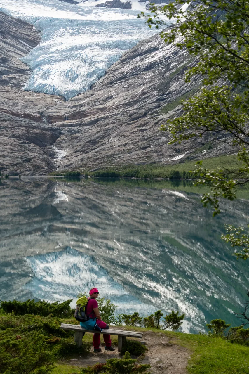 Svartisengletscher Svartisengletscher EngabreenFähre zum StartpunktGrandiose Spiegelung im See(kein Bildfehler!)der Aufstieg beginntWas Schnee so verbiegen kanngleich am Ziel – schien so – aber noch 1h kletternPauseAm Eis angekommenGrößenvergleich Silke-GletscherendeSilke, Amica und LaraKeksbestechungAbendessen an Stellplatz