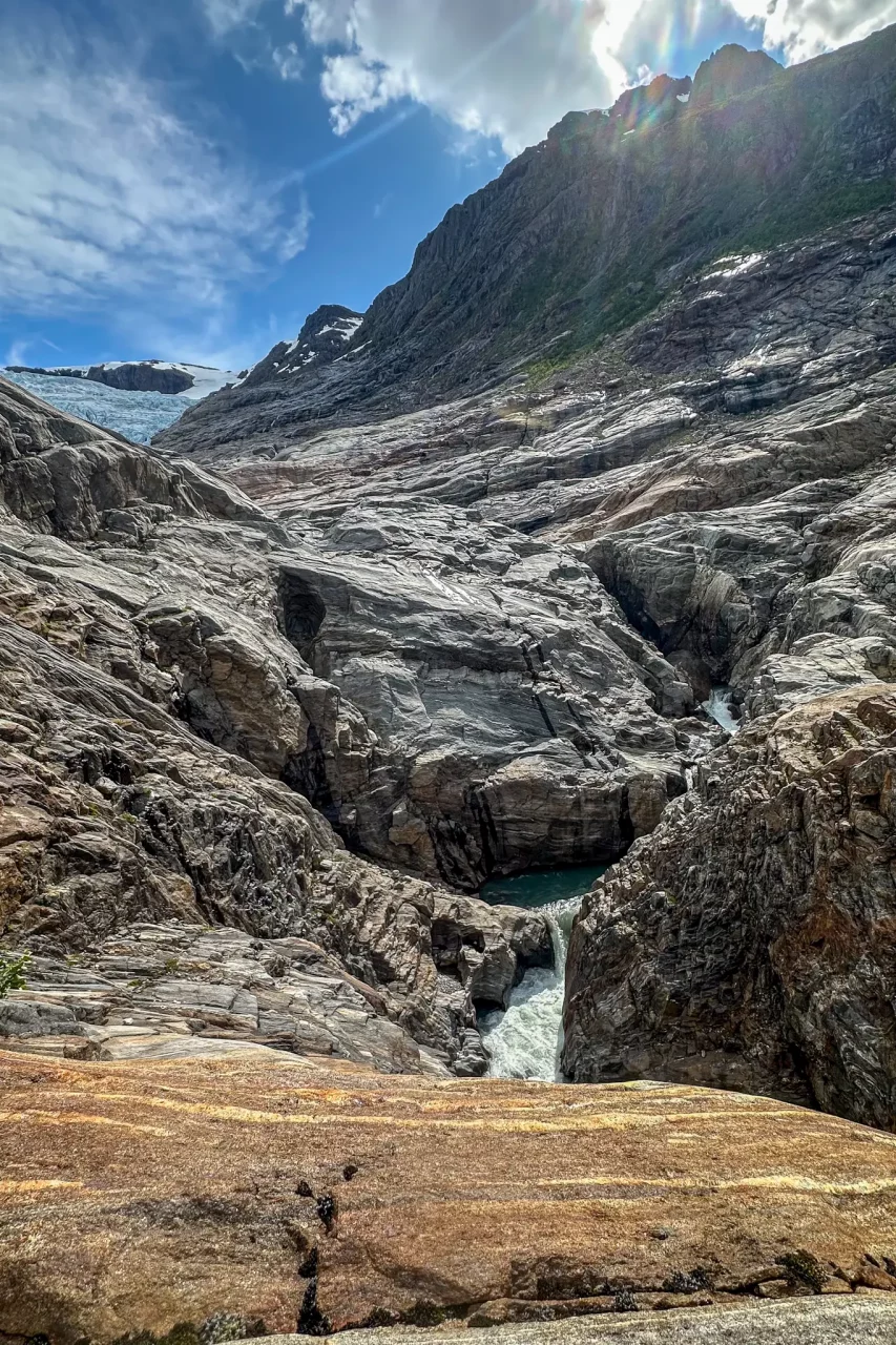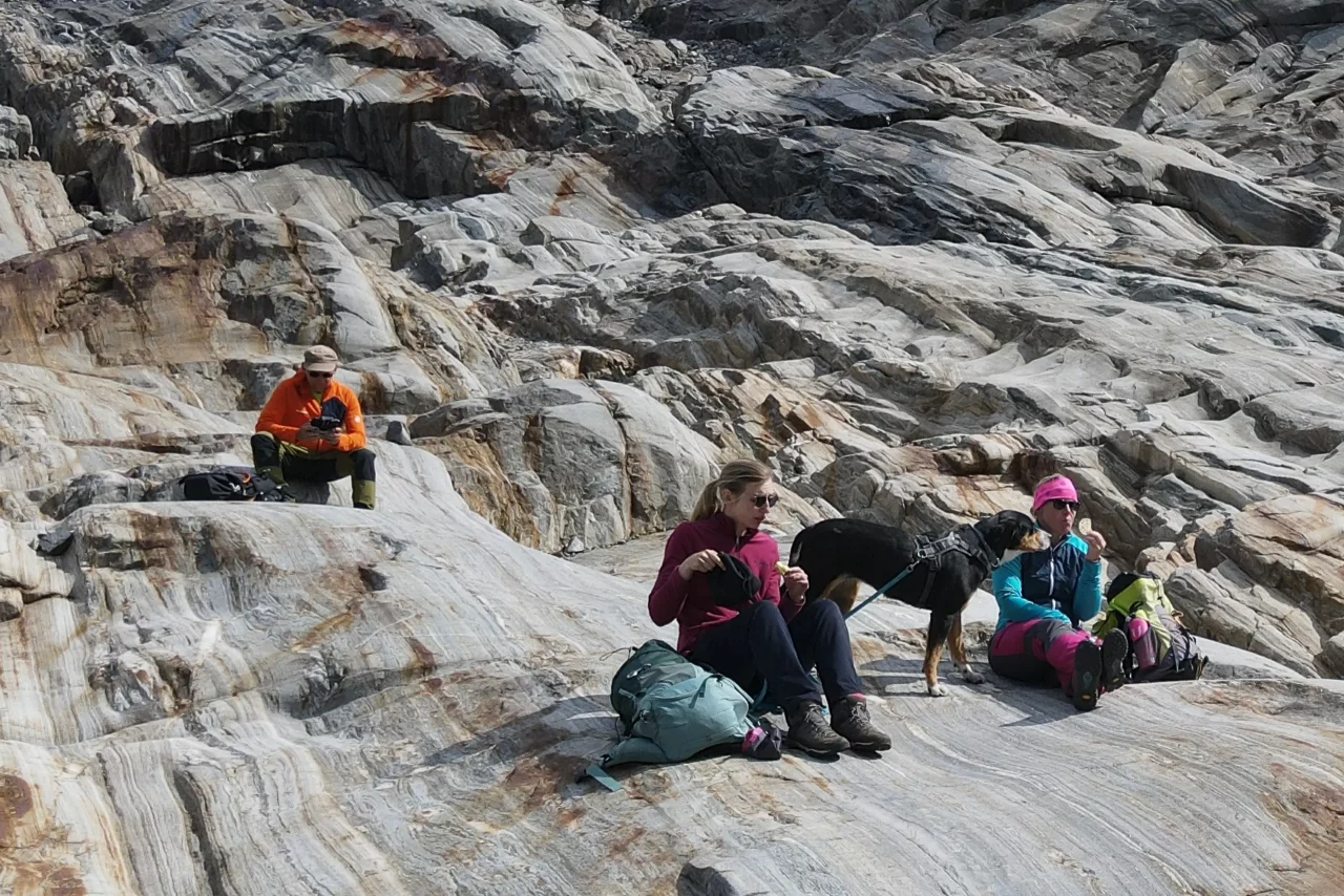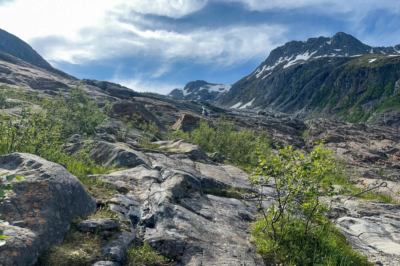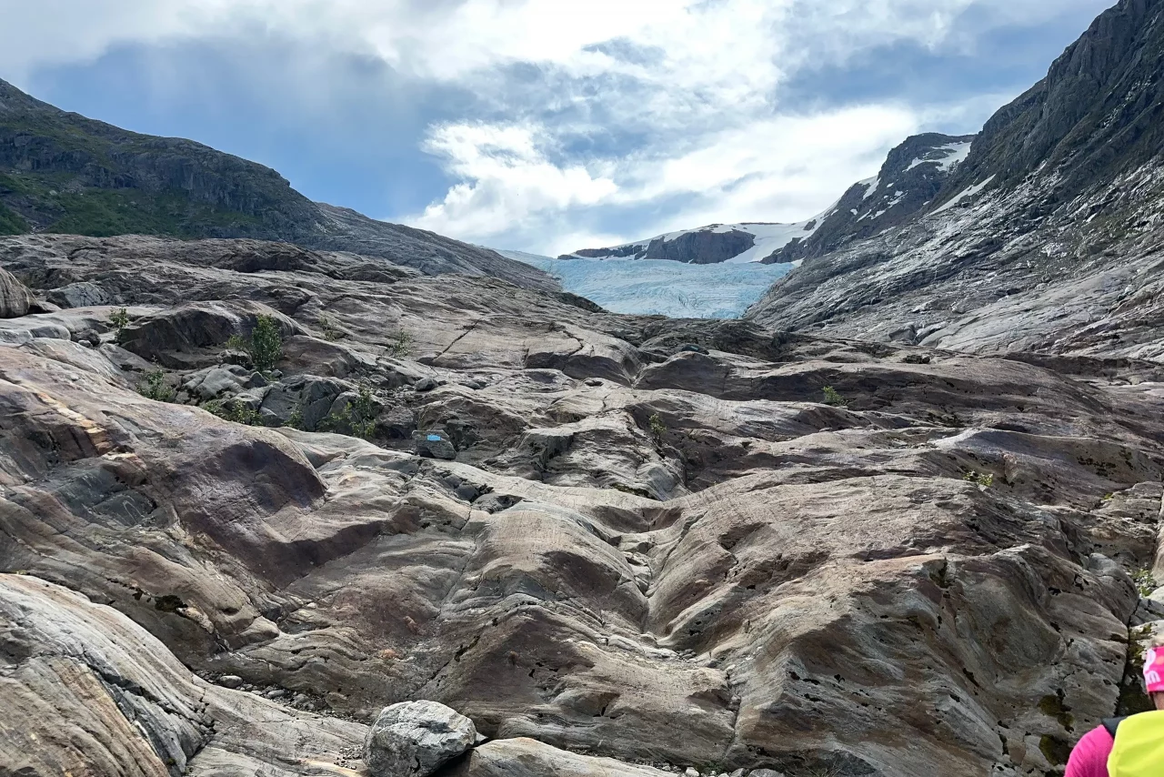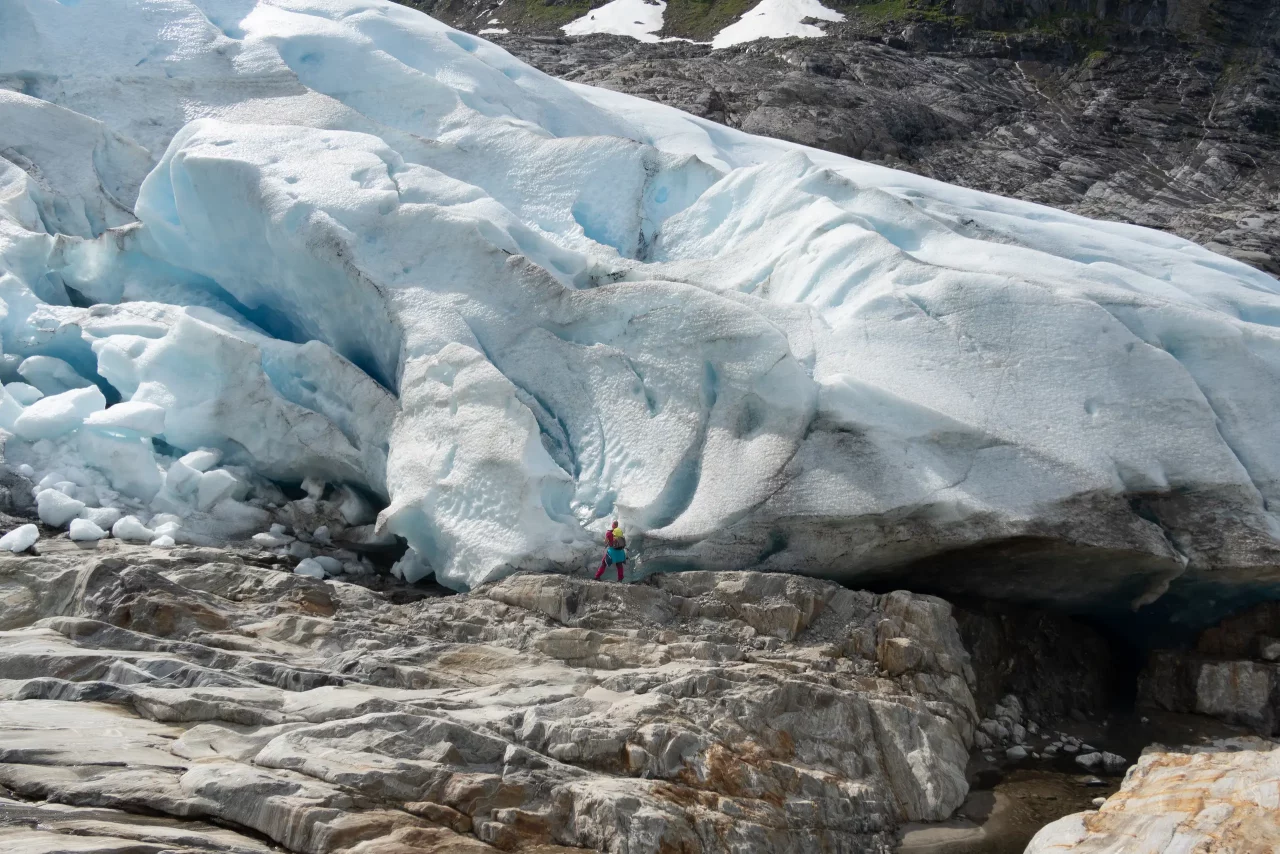 Svartisengletscher Svartisengletscher EngabreenFähre zum StartpunktGrandiose Spiegelung im See(kein Bildfehler!)der Aufstieg beginntWas Schnee so verbiegen kanngleich am Ziel – schien so – aber noch 1h kletternPauseAm Eis angekommenGrößenvergleich Silke-GletscherendeSilke, Amica und LaraKeksbestechungAbendessen an Stellplatz