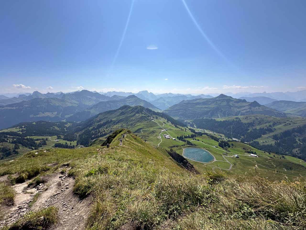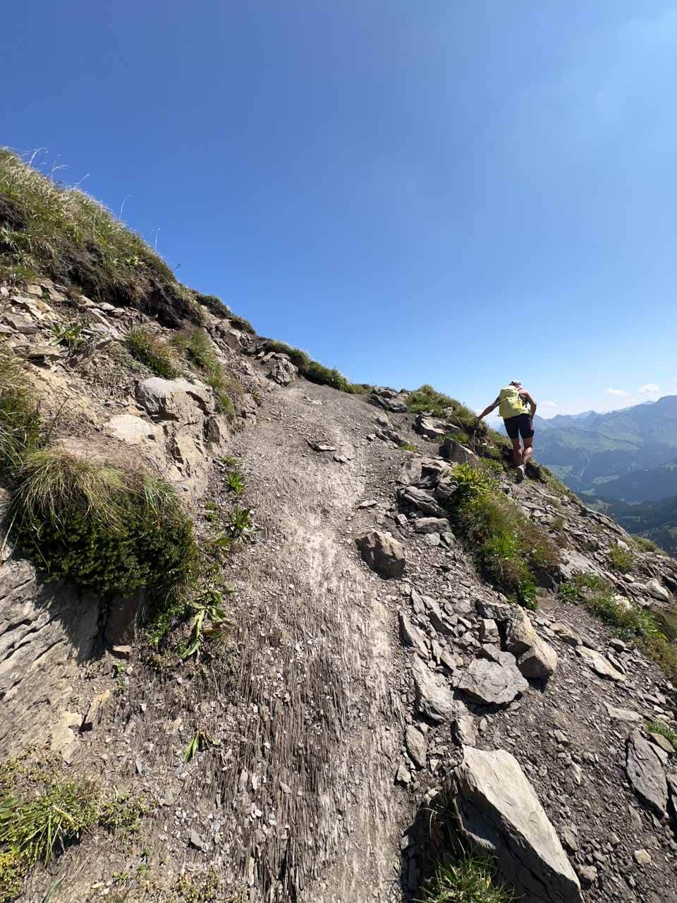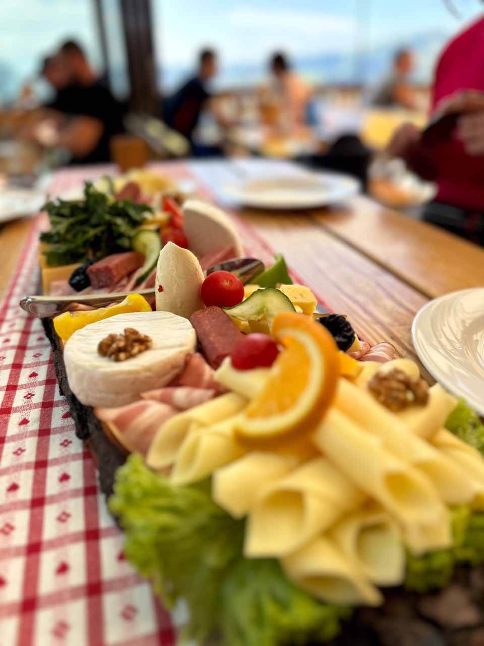 Da es heute sehr heiß werden soll frühstücken wir etwas früher. Start um 09:00 Uhr zur Tour. Der Bus fährt eine gefühlte Ewigkeit, ca. 4min, bis zum ersten Halt der Liftstation Mellau. Dort steigt die Gruppe um Anja, welche heute die längere Tour laufen, aus. Wir liften mit der Bergbahn das erste Stück und laufen dann in Richtung Damülser Mittagsspitze. Die Gruppe reißt schnell auseinander und wir gehen zu fünft voraus. Es ist heute doch deutlich heißer als gestern und als wir an der Passhöhe ankommen, welche zur Mittagsspitze führt, sind wir sehr dankbar für den kühlenden Bergwind. Am Abzweig zur Mittagsspitze trennt sich unsere Gruppe erneut, die einen gehen direkt weiter zur Elsenalpstube und Claudia und ich steigen zur Mittagsspitze auf. Teilweise auf allen vieren klettern wir bis zum Gipfelkreuz und als wir oben angekommen eröffnet sich uns ein fantastisches Panorama. Nach und nach kommen noch Thomas und einige unserer Wandergruppe, die den kürzeren Weg gelaufen sind, ebenfalls am Gipfel an. Nach einer halben Stunde klettern wir wieder nach unten um dann auch zum Berggasthof Elsenalpstube, dem Mittagstreffpunkt, zu gehen. Überraschenderweise ist der Abstieg weitaus einfacher als der Aufstieg erwarten ließ. Dort treffen wir Anja und die anderen aus der Gruppe und wir genießen die vorbestellte Bretteljause. Nach der Mittagsrast wandern einige wenige zur Talstation des Sesselliftes runter, der Rest nimmt den Sessellift. An der Talstation erwartet uns am Bus ein Aperol-Spritz Büffet und danach geht es zurück zum Hotel. Nach Wellness im Schwimmbad/Sauna und einem sehr leckeren Abendessen beenden die einen früher, die anderen später den Abend im Metzgerstüble Mellau, einer sehr schönen Kneipe unweit des Hotels.