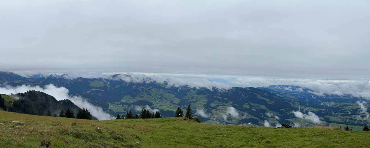 Abfahrt 04:00 Uhr. Pünktlich bin ich am Treffpunkt vor dem ehemaligen Sportgeschäft in Bad Camberg. Als der Bus kurz darauf vorfährt ist das Gepäck schnell verladen und nachdem sich alle sortiert und einen Platz im Bus gefunden haben startet die Tour mit leichter Verspätung. Der Bus ist komplett voll und die Stimmung sehr gut. In Anbetracht der frühen Morgenstunde ist es noch sehr ruhig im Bus, da alle versuchen ein wenig zu schlafen. Gegen 08:00 Uhr halten wir an einem Rastplatz und Thomas und Anja bauen ihr „Traveller Frühstücksbuffet“ auf. Absolute klasse, da bleibt keinerlei Frühstückswunsch offen. Eier mit Speck, Käse, Wurst, Obst. Alles erdenkliche und wünschenswerte ist vorhanden. Nach dem Frühstück geht es weiter bis nach Bregenz am Bodensee. Dort startet die erste Wanderung auf den Pfänder, den Hausberg von Bregenz. Am Lift trennen sich die einzelnen Wandergruppen. Die einen wandern unterhalb des Lifts bergauf und die anderen nehmen den Lift und fahren gemütlich nach oben, um dort eine Runde zu wandern. Ich schließe mich Vanessa, Claudia und Andre´ an die eine etwas größere Runde zur Pfänderspitze gehen. Also wenn ich ehrlich bin gehen wir kurz mit Vanessa, das Tempo kann und will ich nicht halten. Ein oder zwei Kilometer…..dann ist sie voraus und weg. Aber die Strecke geht immer Richtung Pfänderspitze und als wir oben ankommen treffen wir nach und nach alle Anderen aus der Reisegruppe wieder.